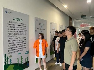 踏入企业大厅,实践团成员们的目光瞬间被点燃,眼中闪烁着对企业创新文化与发展历程的探寻热忱。他们围绕华宇标识错落而立,或俯身细察纹理,或仰首凝视全貌,青春的身影与企业 LOGO 交织成一幅灵动的画卷。快门轻响,时光在此刻凝结,将探索的热忱与企业的厚重底蕴一同封存在光影之中。行至文化长廊,流动的光影在墙面交织,“创新、成长、分享” 的鎏金字样宛如磁石,牢牢牵引着众人的步伐,成员们屏息驻足,在字里行间探寻着企业发展的精神密码。从展示员工风采的照片墙,到体现项目成果的陈列区,同学们深刻感受到了华宇公司鼓励创新、重视人才成长的浓厚氛围,也借此对人工智能、大数据、云计算等前沿技术有了更为深入、透彻的理解。而那一面详细记录着企业发展历程的展示墙,更是让同学们直观且清晰地了解到了整个行业的迭代节奏,深刻明白了在日新月异的职场环境中,持续学习、积极适应变化对于个人职业发展的至关重要性。