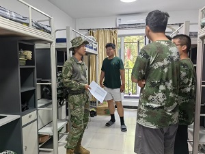 辅导员与教官对学生宿舍开展全面检查工作,围绕内务整理规范,细致核查床铺铺设、被装叠放、桌面整洁度及物品收纳秩序等环节,并现场予以专业指导。检查过程中,辅导员还与同学们亲切交谈,系统了解学生生活习惯、兴趣特长等,记录和解决学生遇到的生活困难,着力为新生解决遇到的各类问题,在走访过程中拉近与同学们的距离。