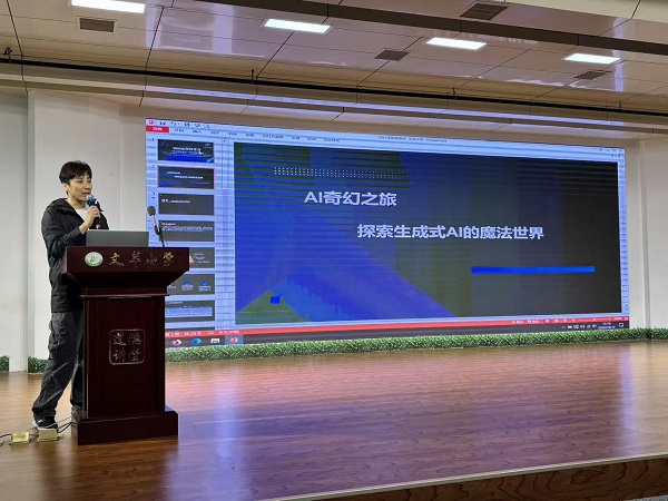 在介绍国内外生成式AI发展现状与主流技术时,闫锴教授不忘结合我校在人工智能领域的教学与科研方向,向同学们传递“科技报国”的理念。他鼓励大家:“现在的AI技术离不开科研人员的钻研,未来更需要你们带着奇思妙想,去探索AI的更多可能。OK138太阳集团也一直在培养懂技术、敢创新的科技人才,期待未来能在校园里见到热爱科技的你们!”