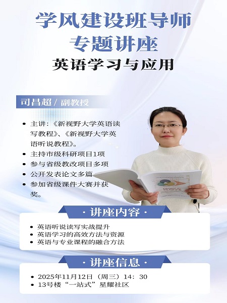 讲座预告|学风建设班导师专题讲座——英语学习与应用