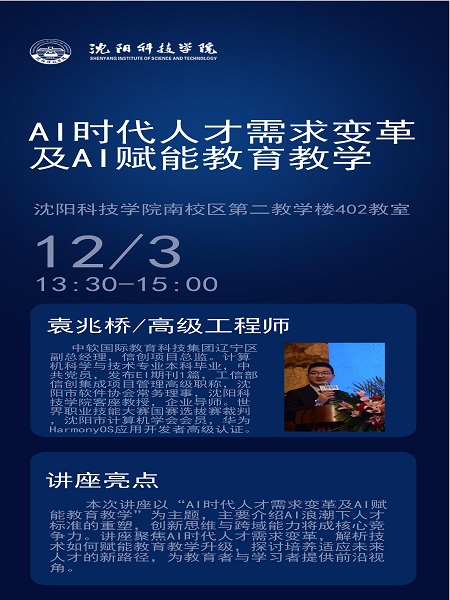 本次讲座以“AI时代人才需求变革及AI赋能教育教学”为主题,主要介绍AI浪潮下人才标准的重塑,创新思维与跨域能力将成核心竞争力。讲座聚焦AI时代人才需求变革,解析技术如何赋能教育教学升级,探讨培养适应未来人才的新路径,为教育者与学习者提供前沿视角。