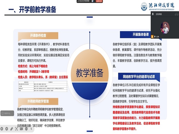 会上,主管教学工作的副院长王娇传达了校领导关于新学期教学工作的指示精神,并结合学院实际作出具体部署。她强调,要持续规范教学信息公示,加快推进在线教学平台建设,严把课堂教学入口关,组织开展教学材料专项检查,落实学院领导、系主任及督导组听课全覆盖,全力保障新学期教学秩序平稳有序。针对毕业实习与毕业设计环节,王院长要求进一步规范答辩流程与评分标准,严格落实全程录音制度与材料归档工作;提前启动毕业设计中期检查,明确查重率及AIGC检测指标,压实指导教师责任。同时,要尽快完成实验报告印刷、耗材清单统计等工作,为实践教学提供有力支撑。此外,王院长对教研室活动计划报送、质量工程项目检查及上学期教学材料存档排查等工作作出具体安排,要求各项工作明确时间节点,形成闭环管理。