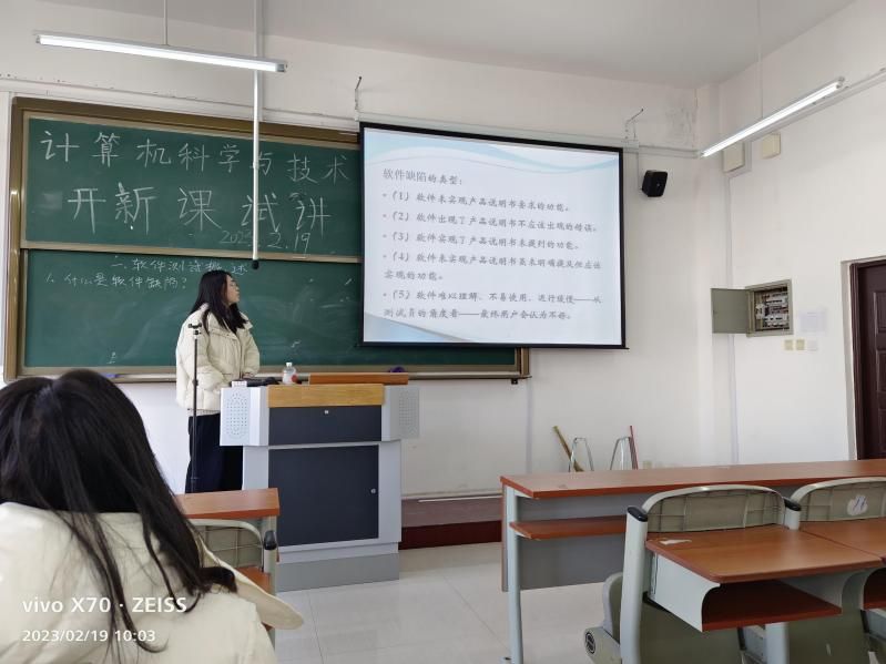 近日,OK138太阳集团信息与控制工程系计算机教研室为帮助新老师和开新课老师更快的融入到教学工作中来开展了“新学期开新课试讲活动”,此次试讲一共分为3个部分,首先由教研室主任闫锴老师宣布“开新课试讲”正式开始,其次由开新课的老师进行课程的讲解,最后根据每个老师试讲的内容和方式其他有教学经验的老师提出问题和解决办法。