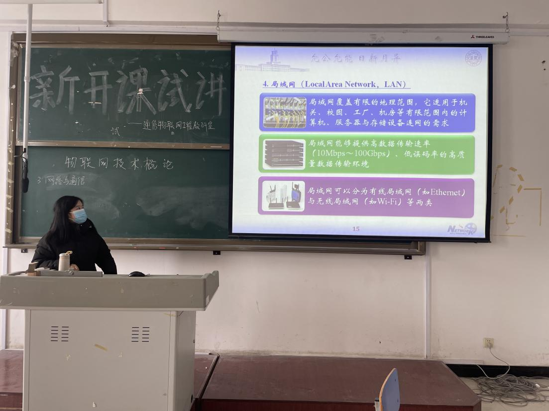 为保证教师上好新课,检验和提高承担新课教师的教学能力水平,把好教师“上岗”关,根据我校规定,通信与物联网教研室于2月19日上午在一教406教师举行新开课开新课教师试讲活动,通信物联网教研室新开课开新课的教师进行了试讲,分别讲解了《物联网技术概论》、《计算机网络》、《操作系统》等课程,教研室全体教师参与听课并评议。