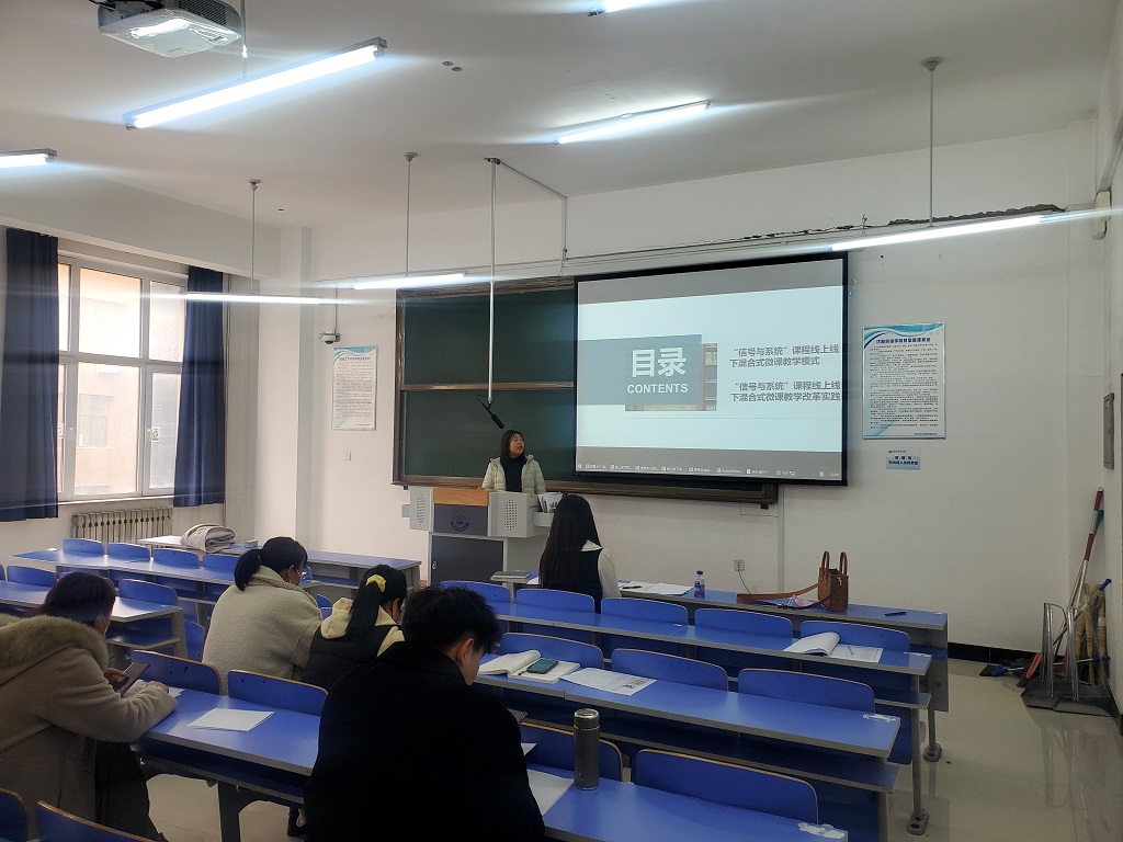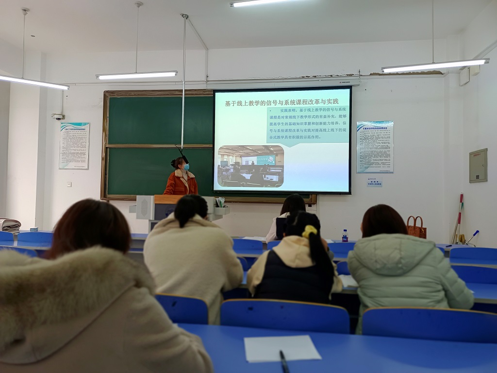 任艳老师分享了《单片机原理及应用A》课程线上线下混合式教学,研究传统教学的不足之处,从理论教学建设、实验实践教学建设、课程考核建设、师资队伍建设等方面进行改革研究,对学业评价进行改革,通过实践,在疫情环境下达到比线下更好的教学效果。崔浩楠老师探讨《电路基础》课程的教学问题,针对该课程理论性强,内容繁杂,较为抽象等特点,从实践教学的重要性,教学方法的改进以及考核方式的完善等方面进行了探讨。将实践教学的模式思想贯彻到线上线下的教学活动中,对学生教育发挥着关键的作用,培养学生创新意识,加强学生创业能力,进而让学生可以更好地适应社会岗位变化,胜任自己的工作。王赛男老师分析《信号与系统》课程存在内容抽象、公式复杂等问题,提出以知识点、工程应用及课程思政等内容为主题,在教学过程中采用微课的形式制作小视频或音频进行辅助教学。实践证明,基于微课构建的线上线下混合式的教学模式,可以让学生成为学习主体,有利于学生学习能力的培养和提高。刘丽丽老师通过分析传统《电路基础》教学中存在的不足之处进行分析,总结传统教学方法单一、课堂互动形式不足、缺乏实践环节等问题。结合“互联网+课堂”线上线下混合式教学模式来进行改革与创新。王娜老师任教的DCS课程,指导学生疫情防控期间健康生活、轻松愉悦、自主学习、促进学生健康成长和全面发展,学校以坚持轻负高效、形式多样、五育并举、智慧工作、家校合力为原则,追求高质量实现“停课不停教、停课不停学”目标要求。王佳老师针对《物联网技术及应用B》课程,通过课前学生携带问题自主学习、搜集资料,课中多媒体形象化演示,课后具体问诊、辅导答疑,实现线上形象化演示、线下具体化实操,促使线上教学与线下教学有效衔接,提升了学生的学习自主性,提高了教学效果和质量,深受学生好评。