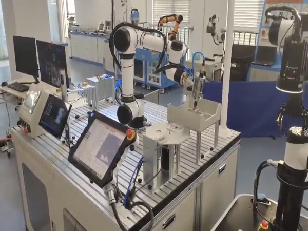遨博E5协作机器人是实验室的核心设备,其负载5kg,臂展1008mm,最大工作半径886.5mm,具备高度的灵活性和稳定性。此外,实验室还配备了先进的软件和开发工具,如ROS开源系统以及多种SDK开发接口,为学生和教师提供了丰富的开发资源。