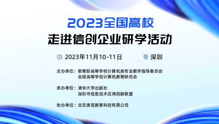 本次研学活动由教育部高等学校计算机类专业教学指导委员会、全国高等学校计算机教育研究会主办,清华大学出版社、深圳市信息技术应用创新联盟合体承办,北京清览教育科技有限公司协办。