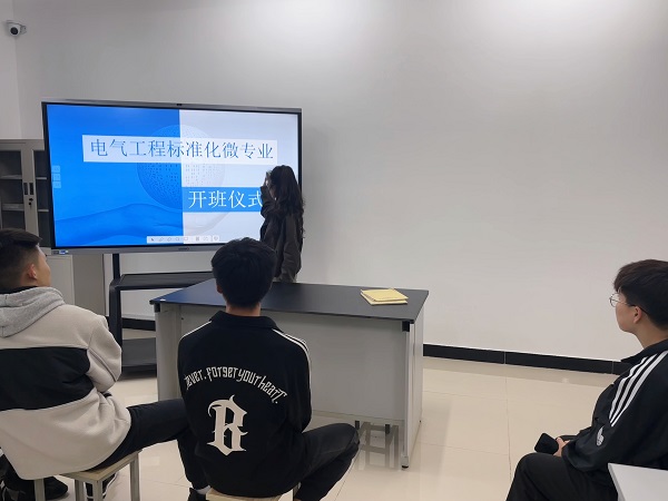 本次开班仪式在学校实训楼302、305同步进行。任课教师董楚妍与吴玺泽分别对电气工程标准化微专业与新能源汽车微专业的开课意义进行了详细阐述。其主要课程包括标准化概论、工业标准化、标准化电气设计、新能源汽车技术、新能源汽车电工电子技术、新能源汽车智能控制等,学生通过学习电气装置以及智能电网等电气标准基础知识、新能源汽车应用技术,领会安全的电气装置以及电气设计方法,以提高学生规范化设计的意识、新能源应用意识,从而确保电气设备在设计、制造、安装和维护、应用过程中符合安全、环保要求,避免事故的发生,保障人员和财产的安全,以此提高学生在电气行业中的竞争力。
