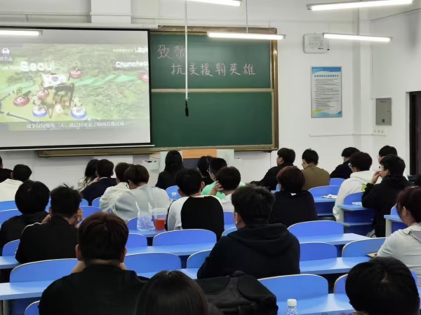 电气2308班导师吴玺泽老师组织了“致敬抗美援朝英雄”主题活动,同学们观看了抗美援朝英雄人物的事迹,铭记这些英雄的名字和事迹,向他们致以最崇高的敬意和深深的怀念之情,也意识到抗美援朝战争的胜利是来之不易的。我们应该倍加珍惜这来之不易的和平环境,努力学习、工作,为祖国的繁荣富强贡献自己的力量。
