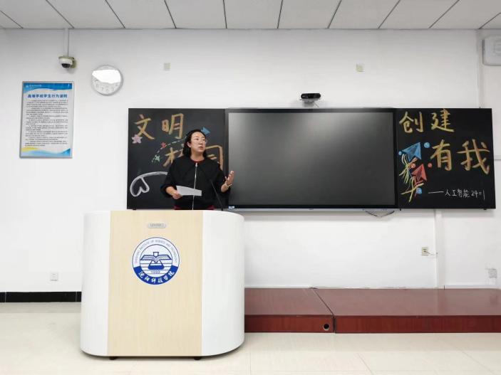 随后,辅导员们向同学们阐述了校园文明的重要性,强调了作为校园的一份子,每个人都应该积极参与到校园文明建设中来。要求同学们在上课不迟到、不早退,主动前排就座,上课认真听讲;生活中讲文明,懂礼貌,谨言慎行,自觉尊重师长;做到衣着得体,严于律己,在校不吸烟、不喝酒,恪守校规校纪等。