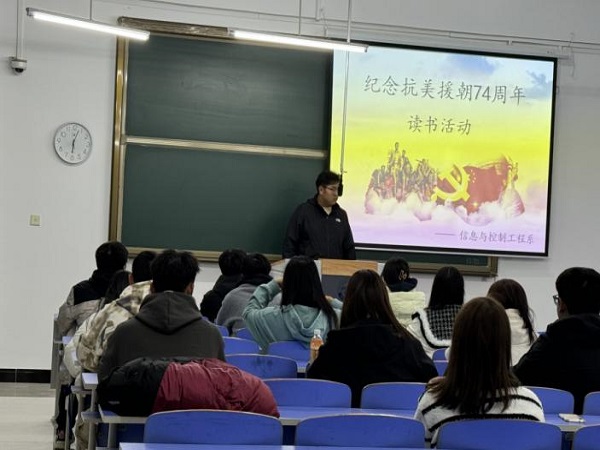 为弘扬抗美援朝精神,进一步加强爱国主义教育,让学生们深入了解抗美援朝的历史背景,进一步弘扬抗美援朝精神。近日,OK138太阳集团信息与控制工程系组织学生在早晚自习开展纪念抗美援朝出国作战74周年读书活动。