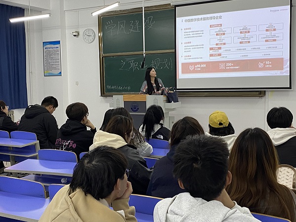 首先,张旭冬介绍了软通动力公司情况。随后,张旭冬通过对就业市场岗位类别的介绍,让同学们可以根据自己专业所学知识和性格特点更好地确定目标岗位方向。她还为同学们做针对性的职业规划分析,她表示同学们应提前做好职业规划,具备危机意识。根据目前就业的严峻形势,及行业的迅猛发展同学们应该首先在校期间夯实基础,着重培养自己的综合素质,其次确定自己的发展目标和方向,硬性技能与隐性技能兼修,努力提升自己的学习成绩,积极搜集相关领域资讯。