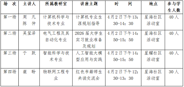 为全面贯彻习近平总书记关于教育的重要论述,落实立德树人根本任务,充分发挥学生“一站式”社区育人平台功能,扎实推进学生社区“4455”育人工作格局,推进学生社区品牌建设,面向信息与控制工程系班导师开展“班导师进社区大讲堂”系列活动,现将活动安排预告如下: