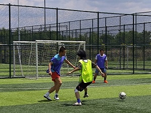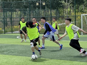 随着裁判一声哨响,本场足球赛正式拉开序幕,比赛双方队员迅速进入状态,展开激烈比拼。毕业生代表队凭借爆发力,频频突破防线,默契的配合如行云流水。教师代表队则稳扎稳打,凭借丰富的经验与战术素养沉着应对,双方激烈角逐引得场边观众喝彩不断,掌声此起彼伏。
