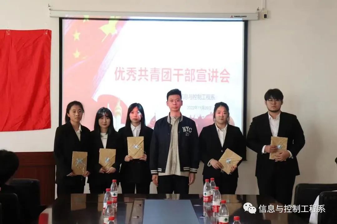 2022年11月29日我校在第一教学楼527教室举办了优秀共青团宣讲会。本次活动出席的嘉宾有信息系分团委书记刘圣西老师,分团委副书记张彤,学生会主席邹嘉辉,学生会副主席刘文圣,以及 2021年获得优秀共青团干部的杨恭博,李梓涵,李依诺,张嘉琪,季睛,王鸿欣六名同学。...